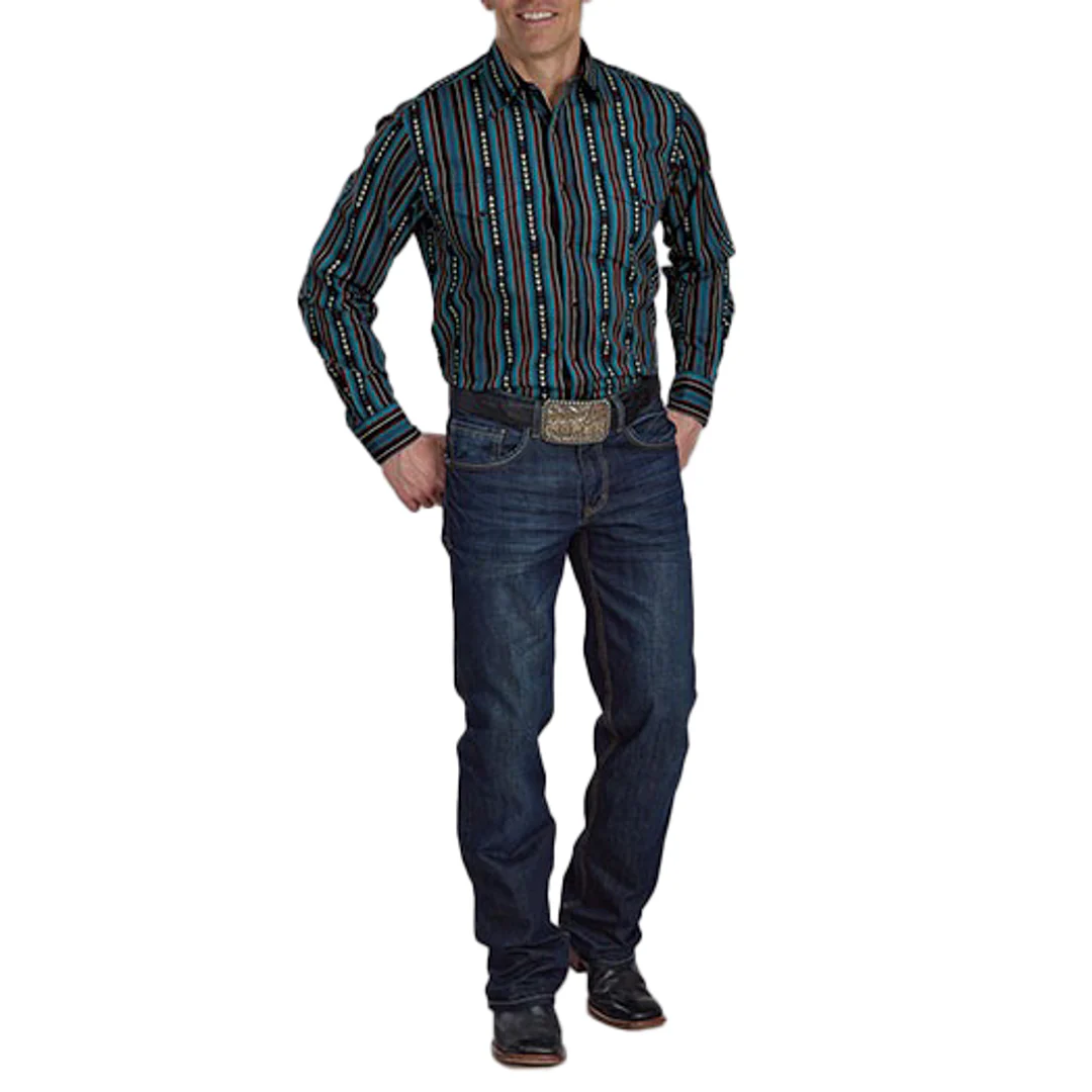 Rock & Roll Denim Men's Striped Aztec Long Sleeve Snap Shirt
