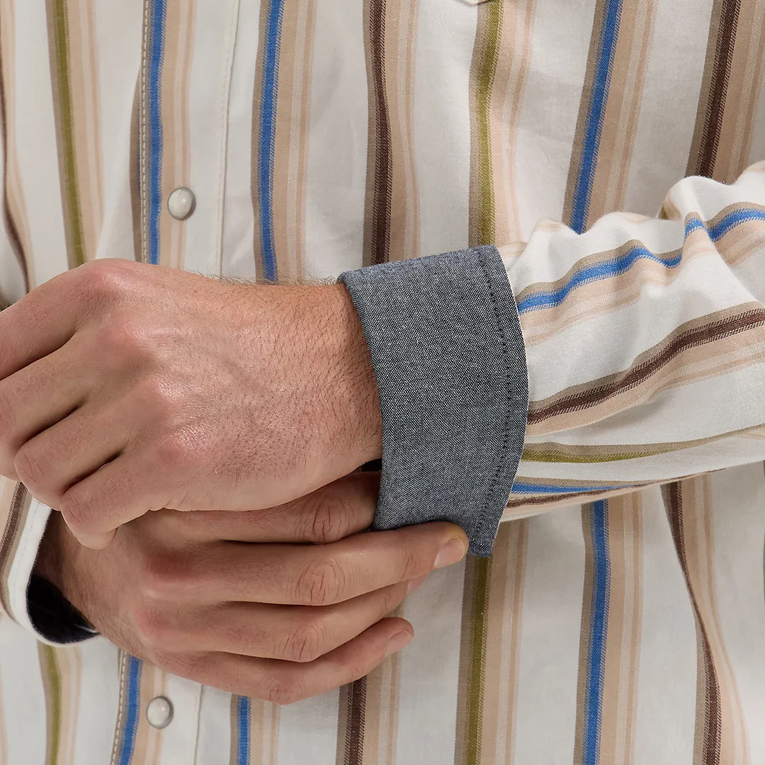 Wrangler Men's Retro Premium Brushpopper Stripe Western Long Sleeve Snap Shirt