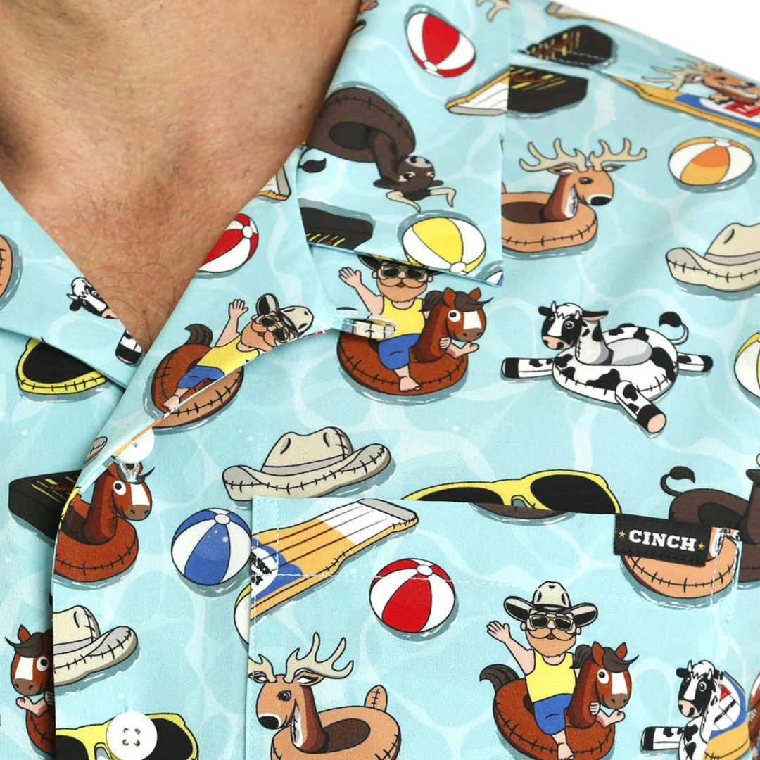 Cinch Men's Short Sleeve Camp Shirt in Turquoise
