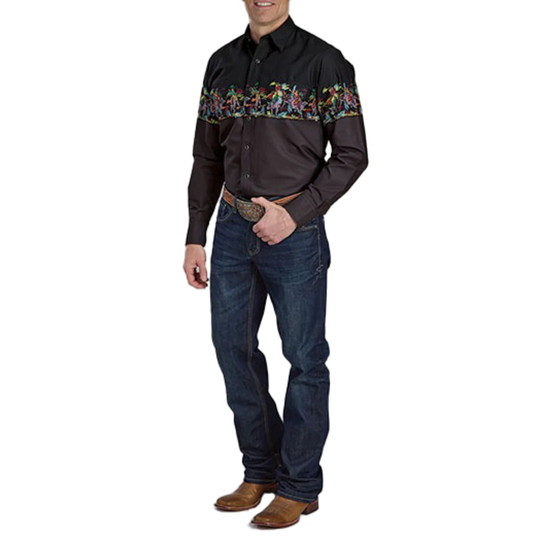 Roper Men's Vintage Collection Border Print Long Sleeve Snap Shirt