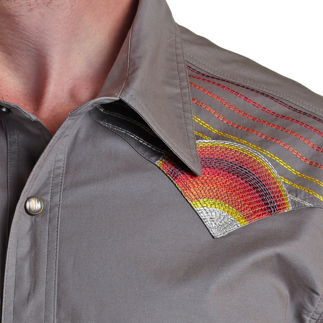 Rock & Roll Cowboy Men's Embroidered Short Sleeve Snap Shirt