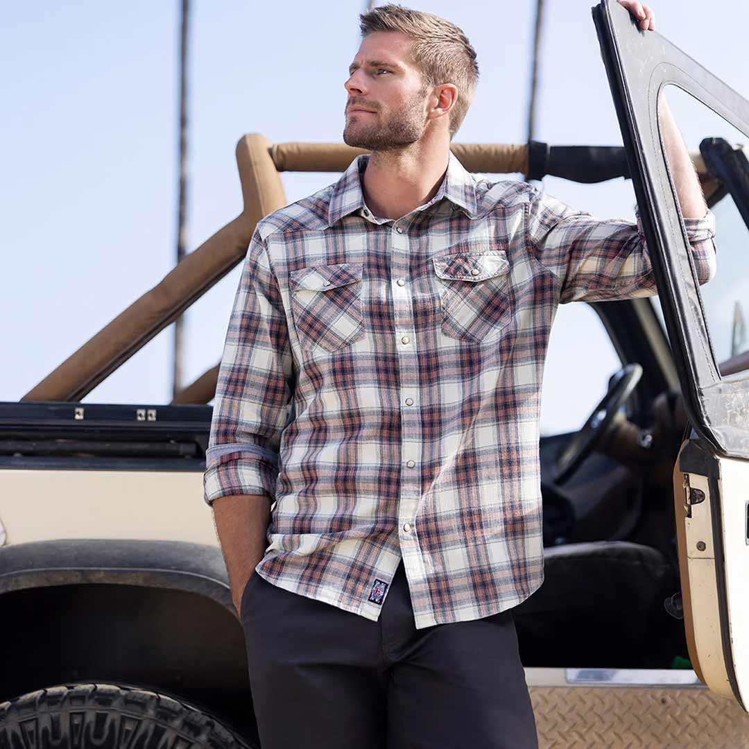 Rock & Roll Denim Men's Plaid Dobby Long Sleeve Snap Shirt